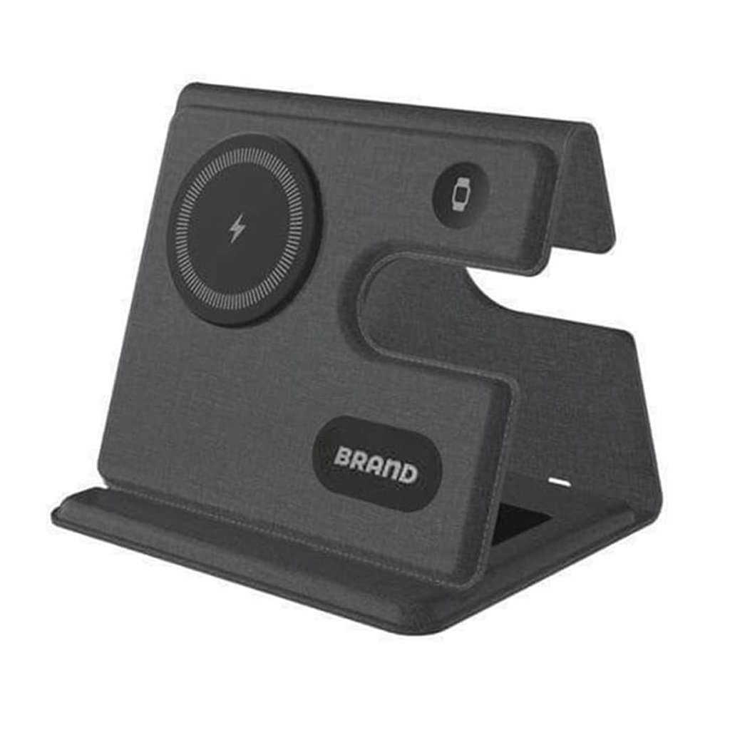 Plana is a 3-in-1 simultaneous charging station made with recycled PU and recycled ABS and featuring the latest 15W magnetic wireless charging for mobile phones, magnetic Apple Watch charger and wireless charging enabled earpods (up to 3W). All devices can simultaneously charge with a single Type C connection. Folds flat and easy to carry. Perfect gift for office and desk with a prominent branding area. Packed in a kraft gift box. This wireless charger is also a CHANGE ZERO product, which means that it is developed with a net zero carbon footprint – By using RCS-certified recycled plastic and PU, we reduce 19% carbon emissions from material use (calculated by ecoact®). Further, we offset the balance 1.97 kgCO2eq per unit by financing renewal energy projects through Climate Partner, making it a carbon-zero product.